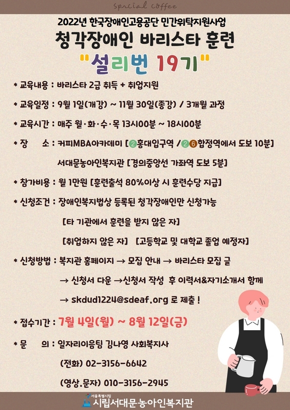 3. 2022년 청각장애인 하반기 바리스타 훈련 "설리번 19기" 모집
