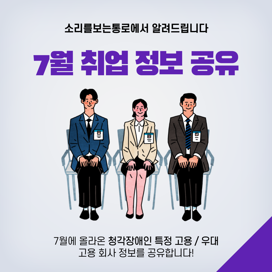 7월에 올라온 청각장애인 특정 고용 / 우대 고용 회사 정보를 공유합니다!
