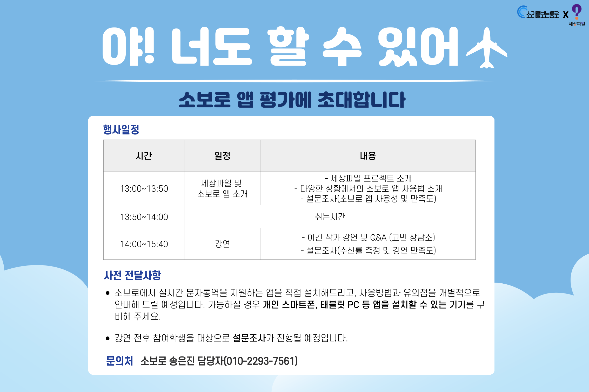 4. 세상파일 프로젝트 참여 시, 이후 소보로 앱 문자통역 서비스 '무상' 지원!