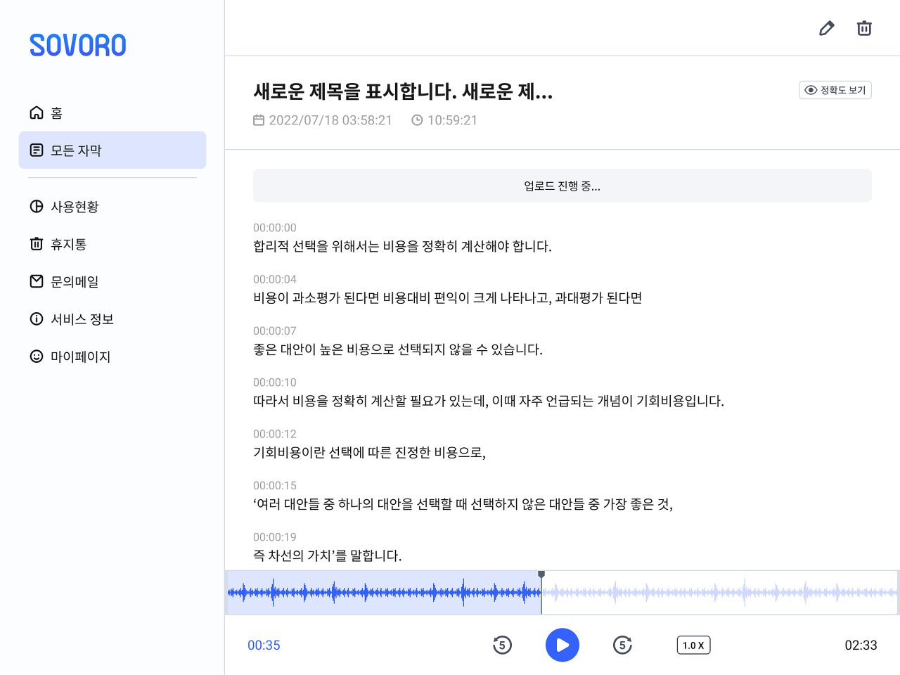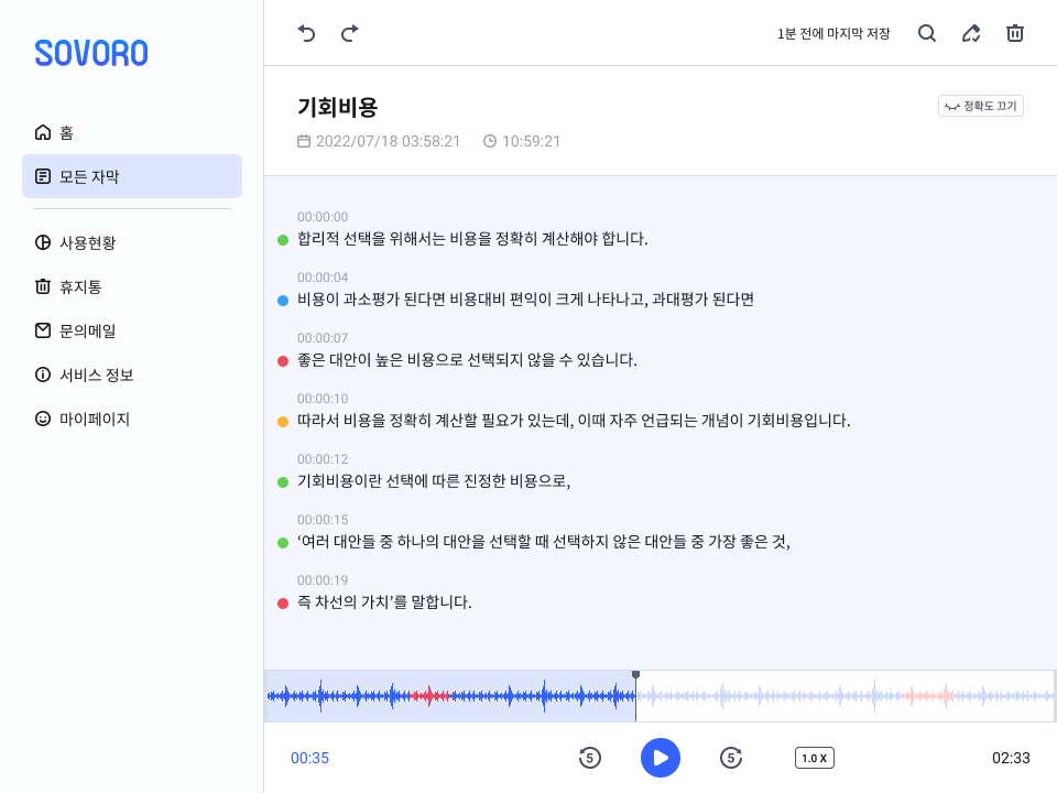 [소보로 에디터] 자막 편집을 쉽게 하려면? 정확도 보기
