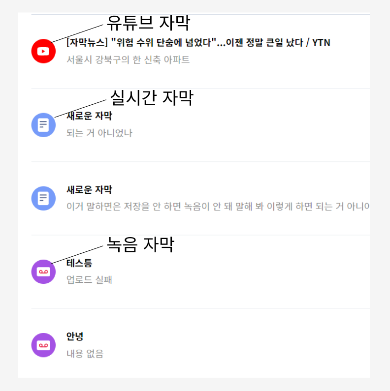 유튜브 자막 / 실시간 자막 / 녹음 자막 아이콘