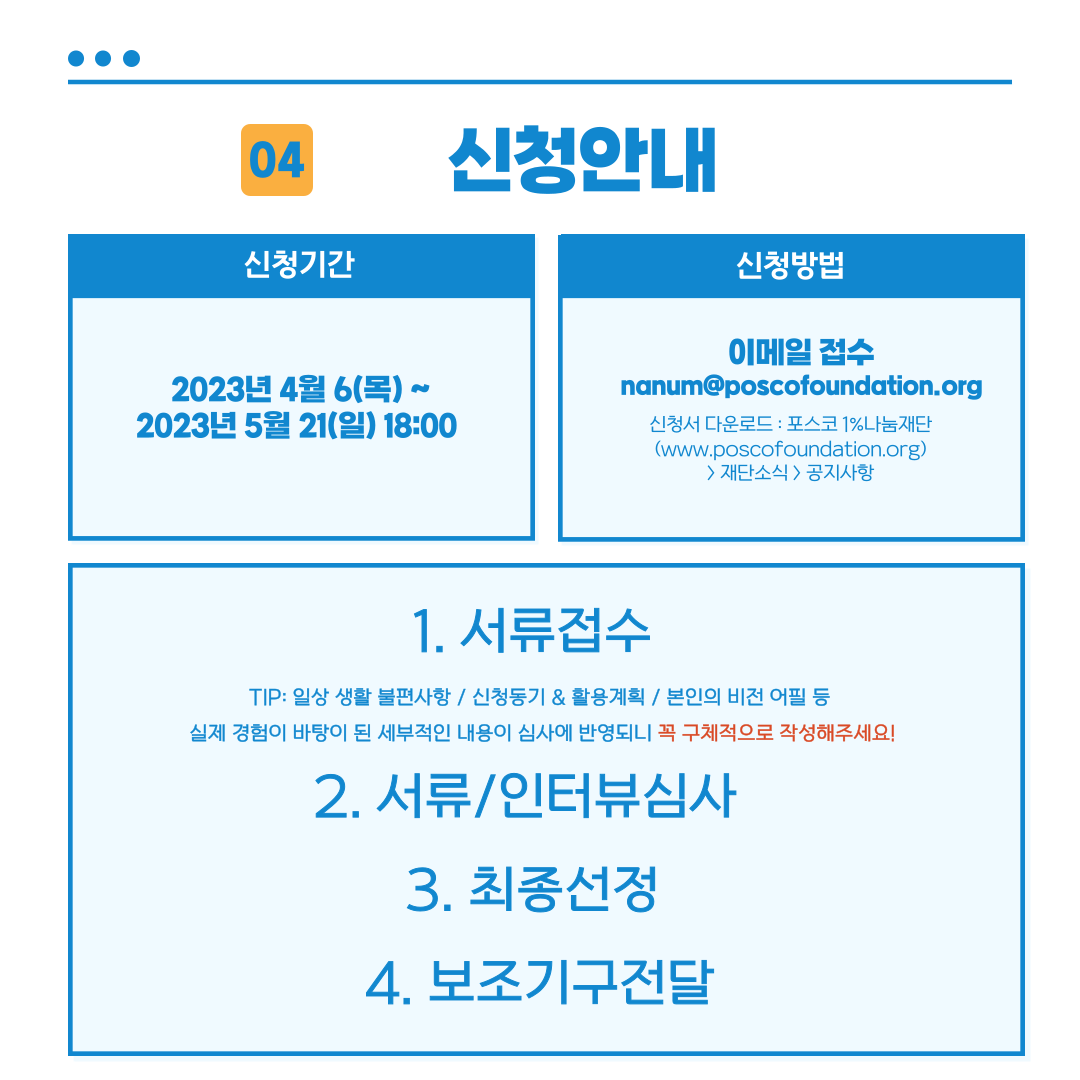 2) 신청방법 : 이메일 접수(nanum@poscofoundation.org) *첨부파일 신청서 다운로드