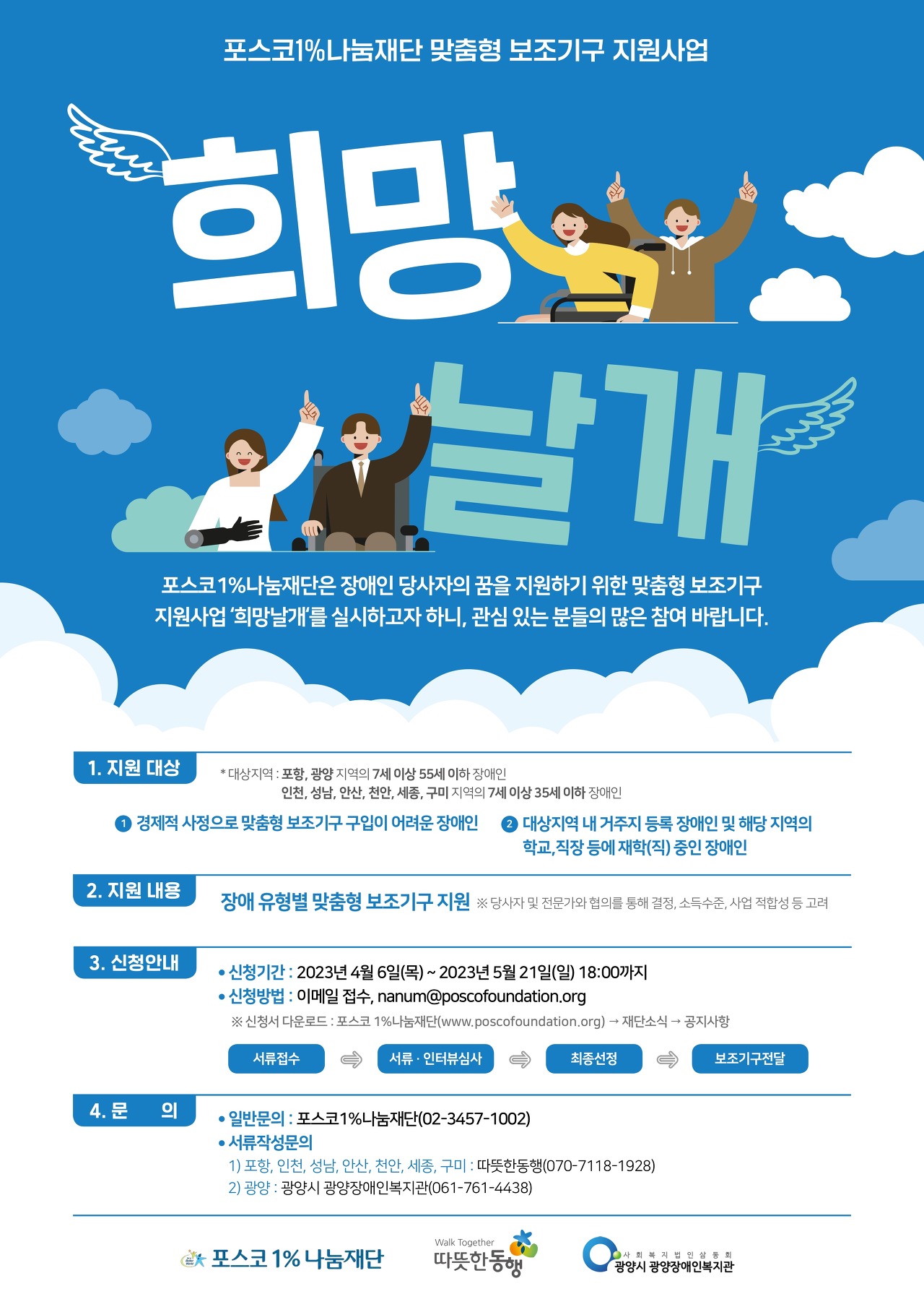 맞춤형 보조기구 지원사업'희망날개'를 진행한다고 합니다.