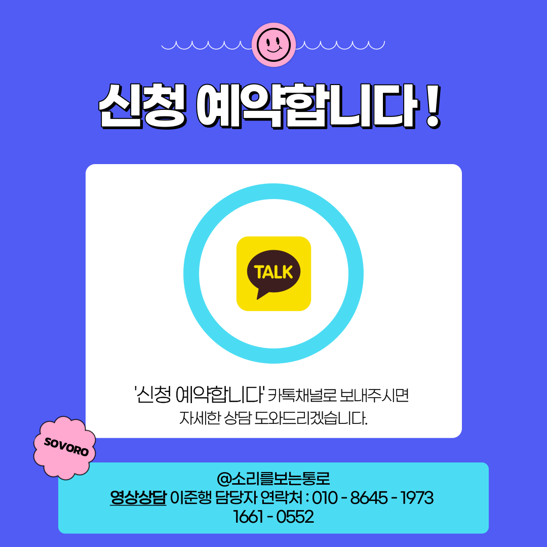 지금 바로 카톡 채팅상담을 통해 신청 예약 연락 주시면 자세하게 안내해 드리겠습니다.